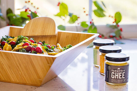 Our partnerships with humane certified dairy farms in the Northeast USA are a huge part of our story. We've met the farmers, we know the cows, and they are very important to us. Farmtrue ghee starts with organic, unsalted butter from pasture-raised, grass-fed cows for the highest nutritional value and exceptional taste. Farmtrue operates a certified organic kitchen, ensuring that you will always receive safe, high quality, and consistent products. Everything we produce is made mindfully in small batches and hand-poured.